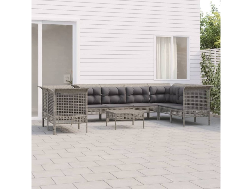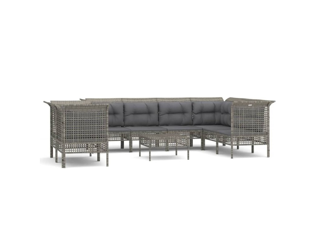 9dílná zahradní sedací souprava s poduškami šedá polyratan 3187546