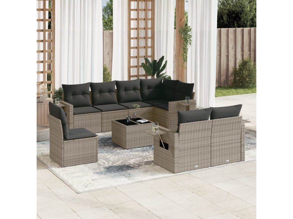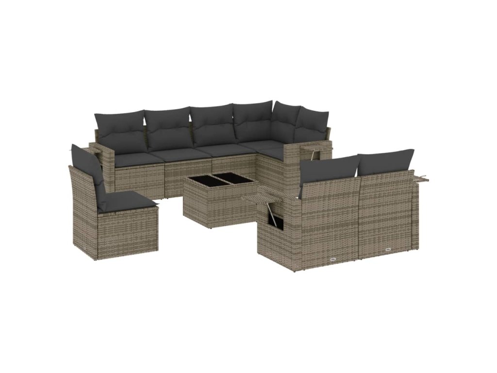9dílná zahradní sedací souprava s poduškami šedá polyratan 3220449