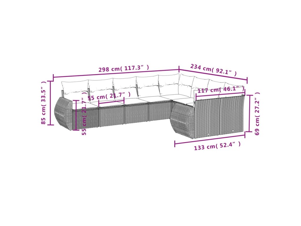 9dílná zahradní sedací souprava s poduškami šedá polyratan 3221839