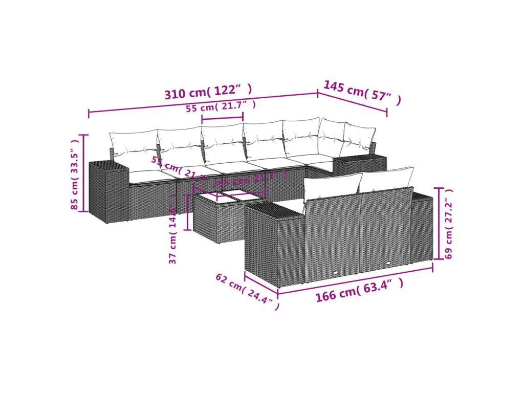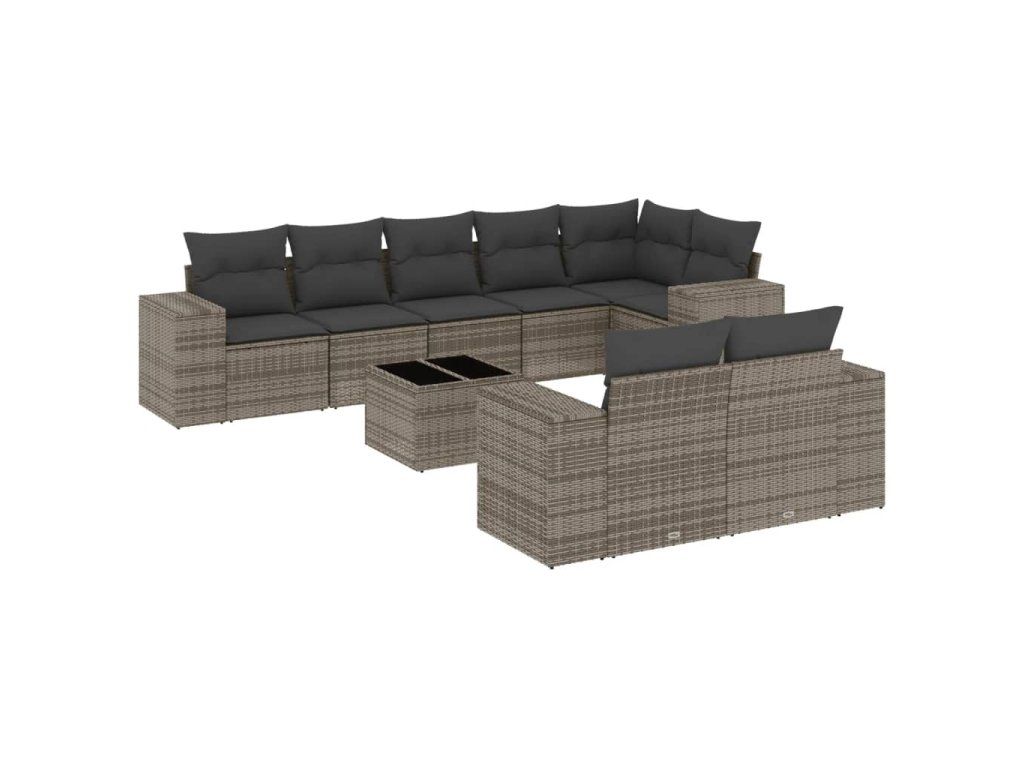 9dílná zahradní sedací souprava s poduškami šedá polyratan 3222829