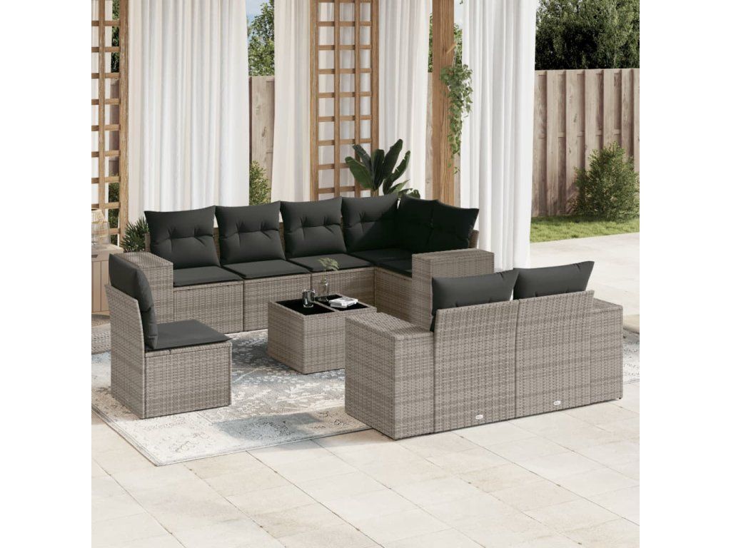 9dílná zahradní sedací souprava s poduškami šedá polyratan 3222849