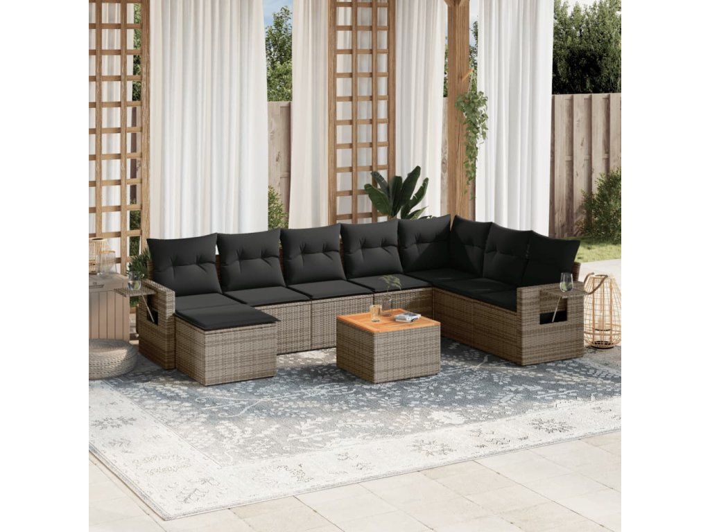 9dílná zahradní sedací souprava s poduškami šedá polyratan 3224702