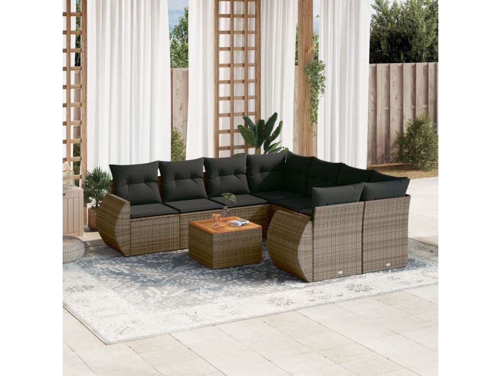 9dílná zahradní sedací souprava s poduškami šedá polyratan 3224933