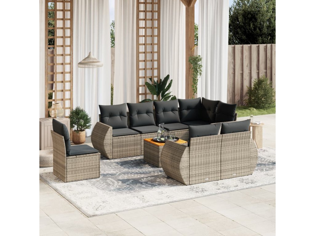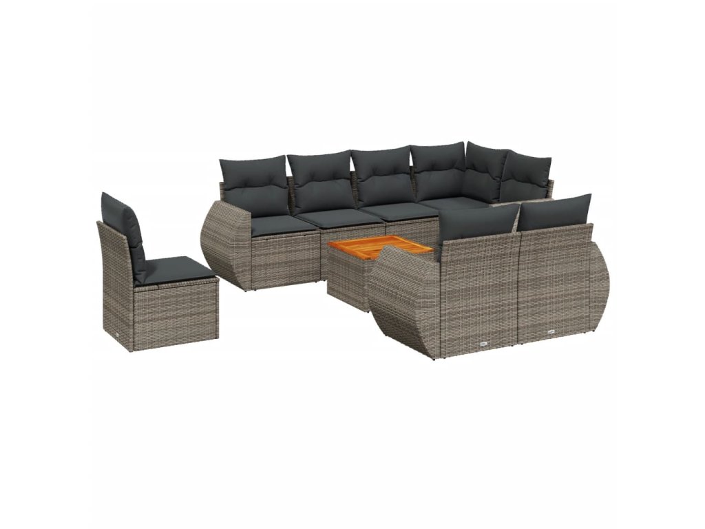 9dílná zahradní sedací souprava s poduškami šedá polyratan 3225101