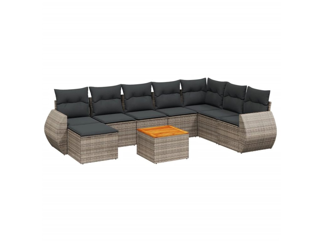 9dílná zahradní sedací souprava s poduškami šedá polyratan 3225143
