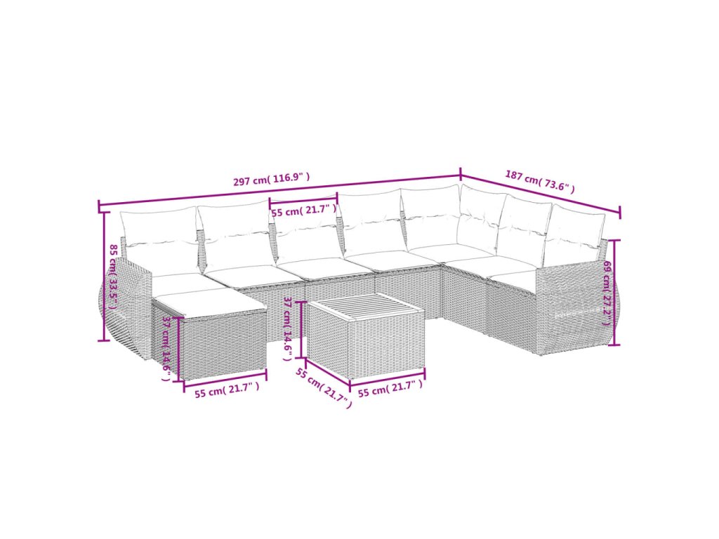 - Modulární design: Tato sada venkovního nábytku se vyznačuje modulární konstrukcí, je tedy zcela flexibilní a lze ji snadno přemisťovat, takže si můžete uspořádat venkovní nábytek dle vašich potřeb.