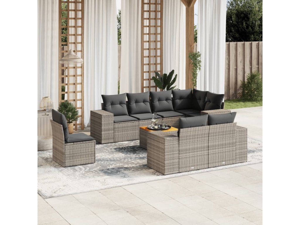 9dílná zahradní sedací souprava s poduškami šedá polyratan 3225542