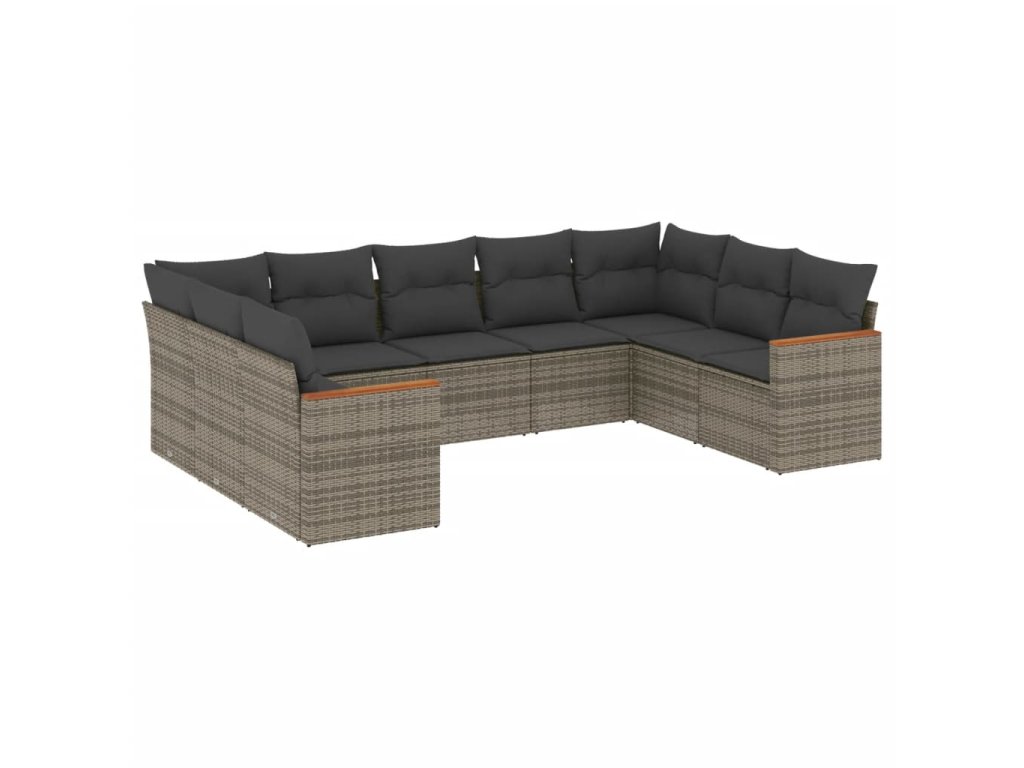 9dílná zahradní sedací souprava s poduškami šedá polyratan 3226277