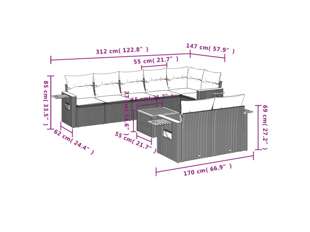 9dílná zahradní sedací souprava s poduškami šedá polyratan 3226998