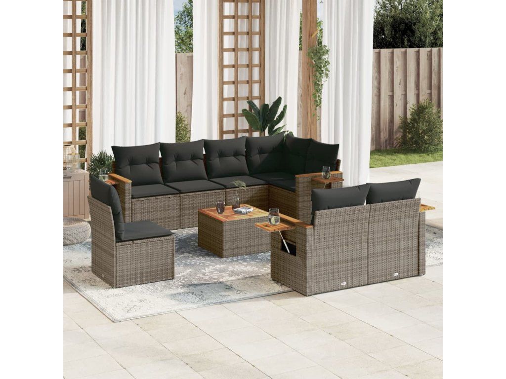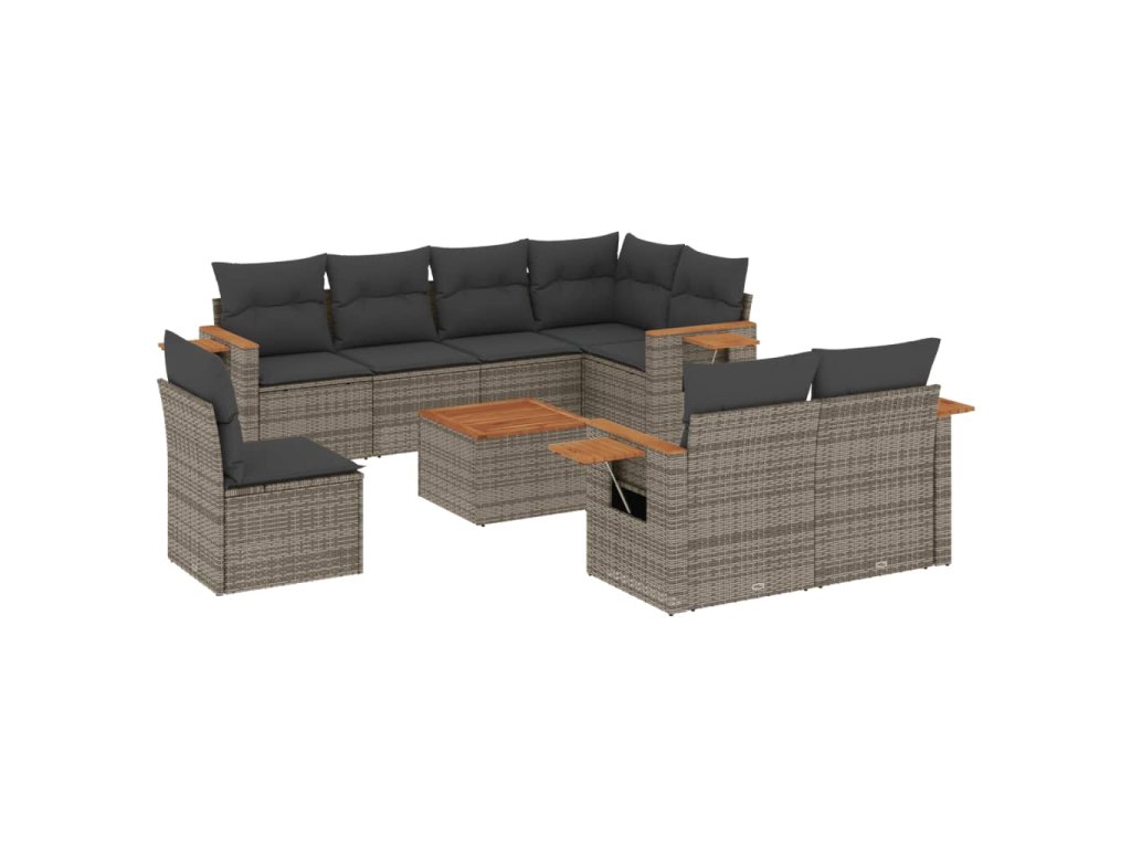 9dílná zahradní sedací souprava s poduškami šedá polyratan 3227012