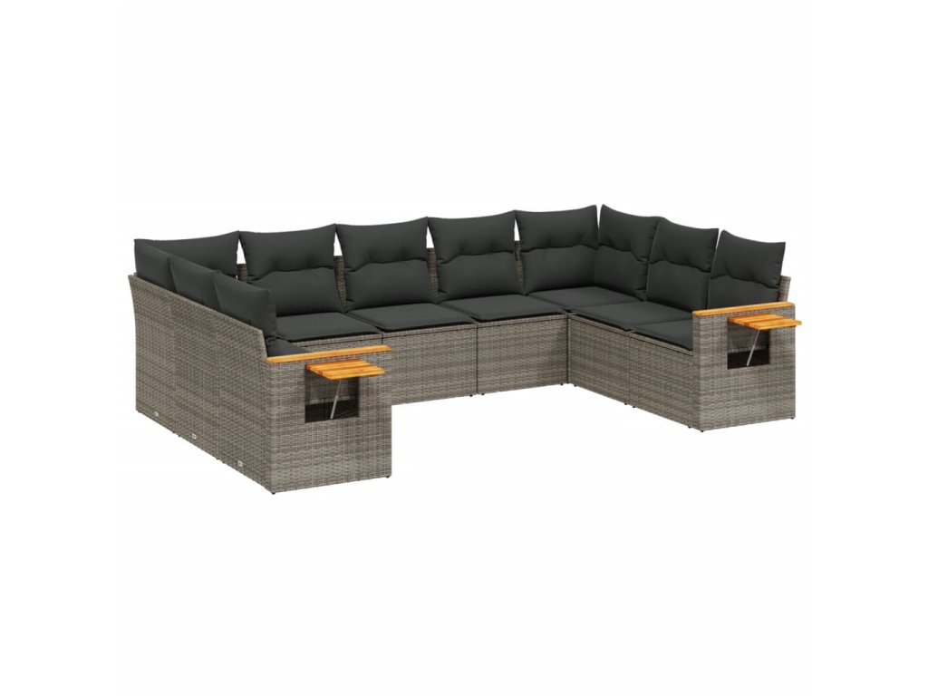 9dílná zahradní sedací souprava s poduškami šedá polyratan 3227117