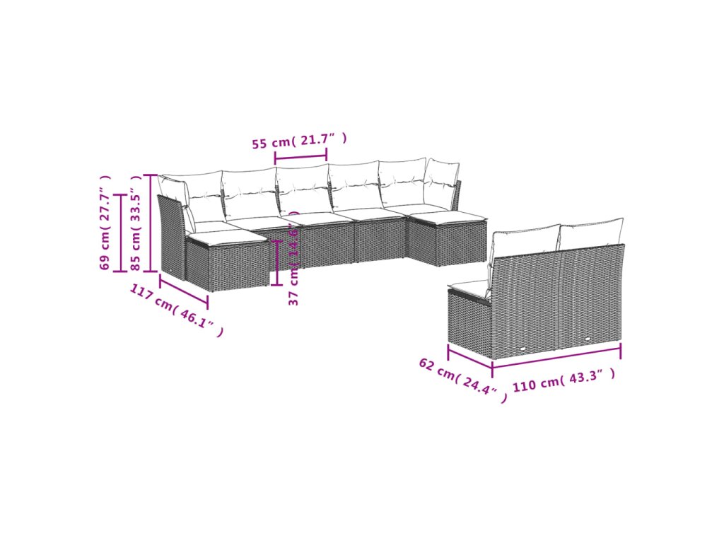 9dílná zahradní sedací souprava s poduškami šedá polyratan 3250109