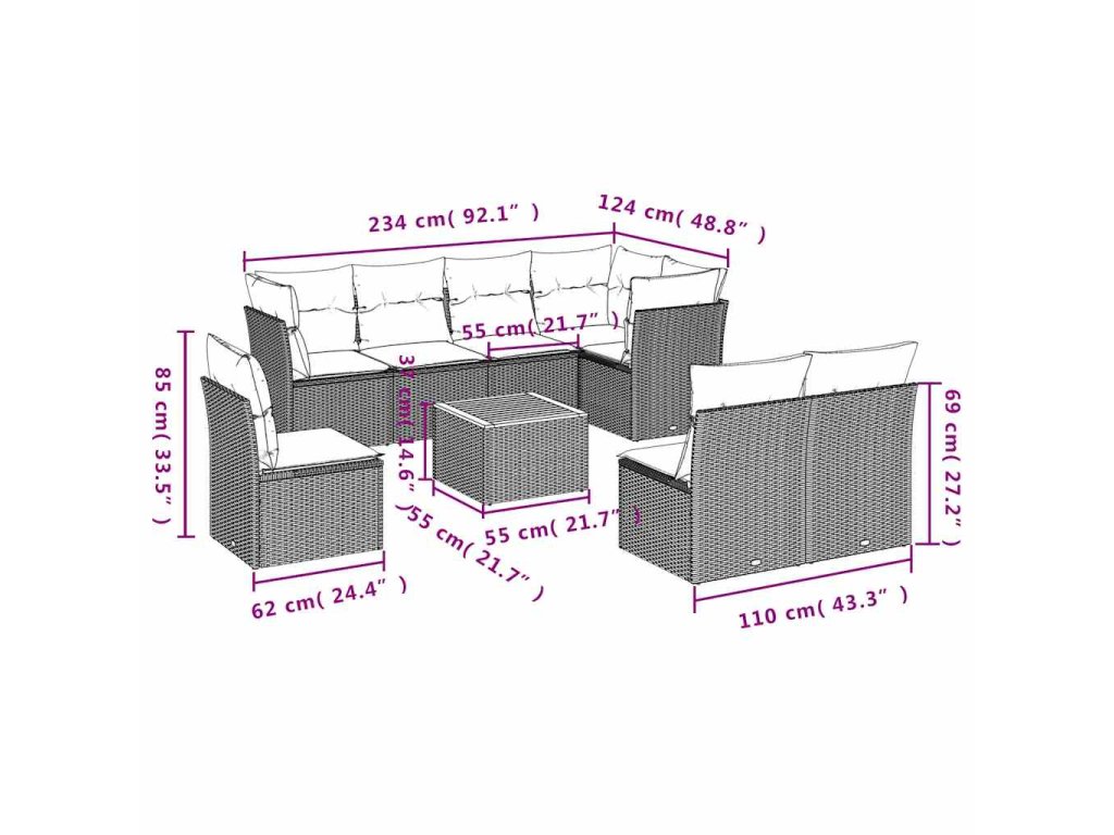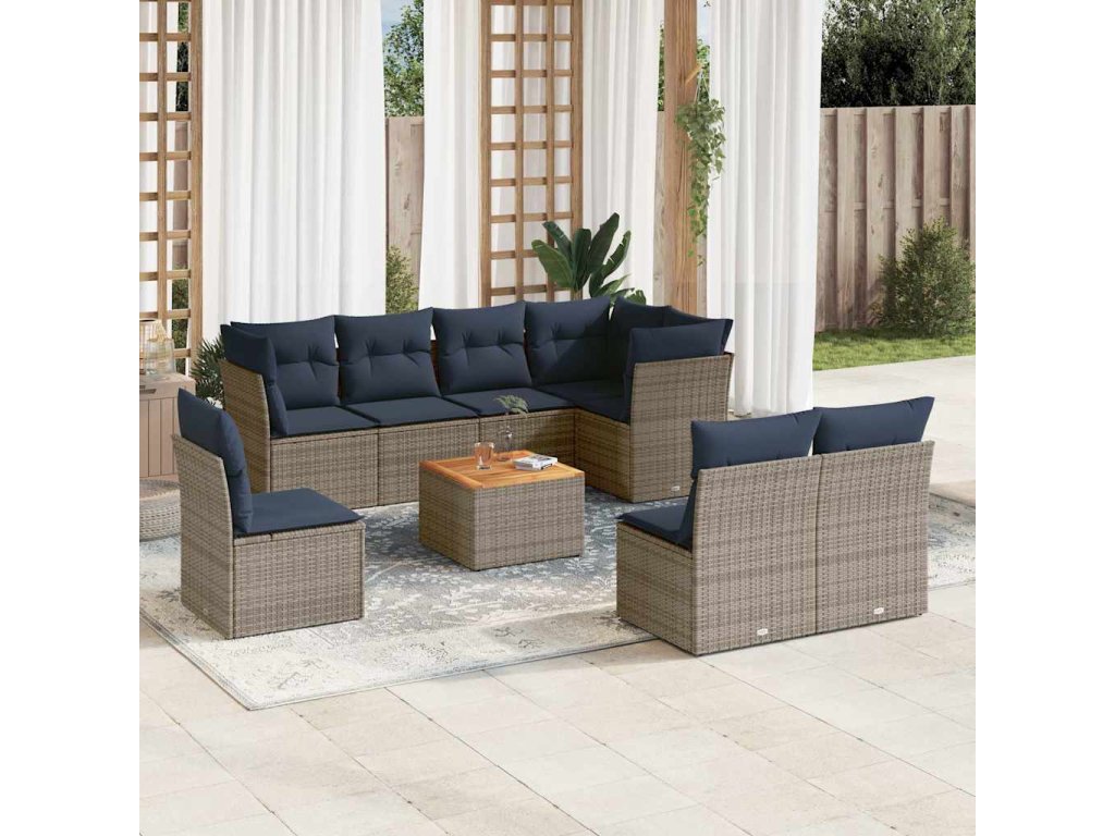 9dílná zahradní sedací souprava s poduškami šedá polyratan 3256019