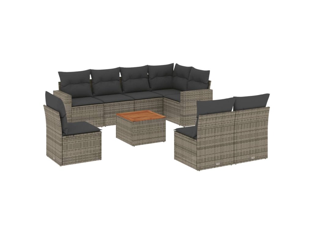 9dílná zahradní sedací souprava s poduškami šedá polyratan 3256494