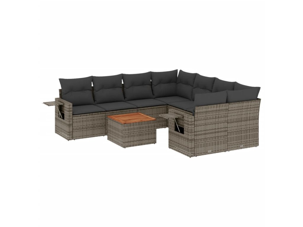 9dílná zahradní sedací souprava s poduškami šedá polyratan 3256823