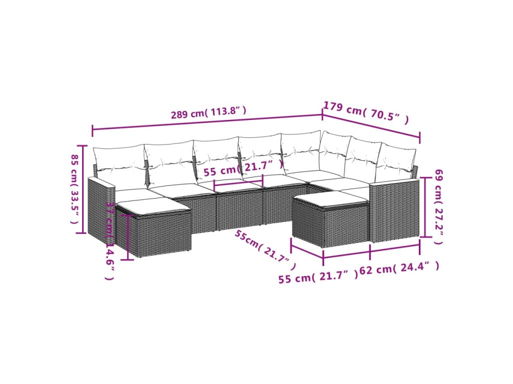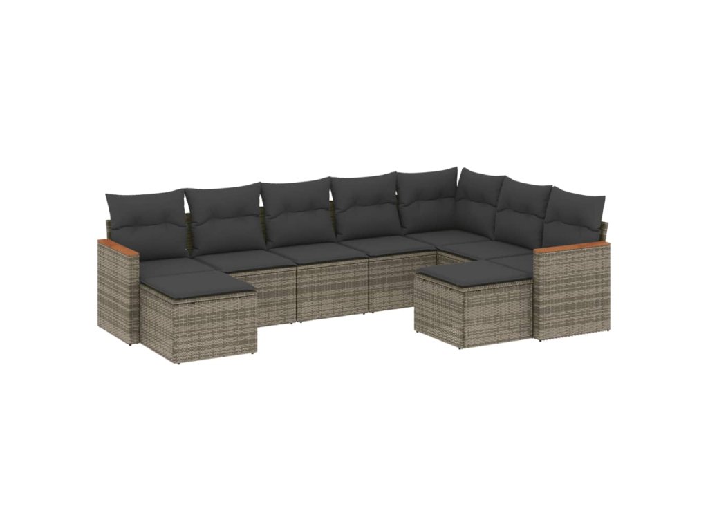 9dílná zahradní sedací souprava s poduškami šedá polyratan 3258945