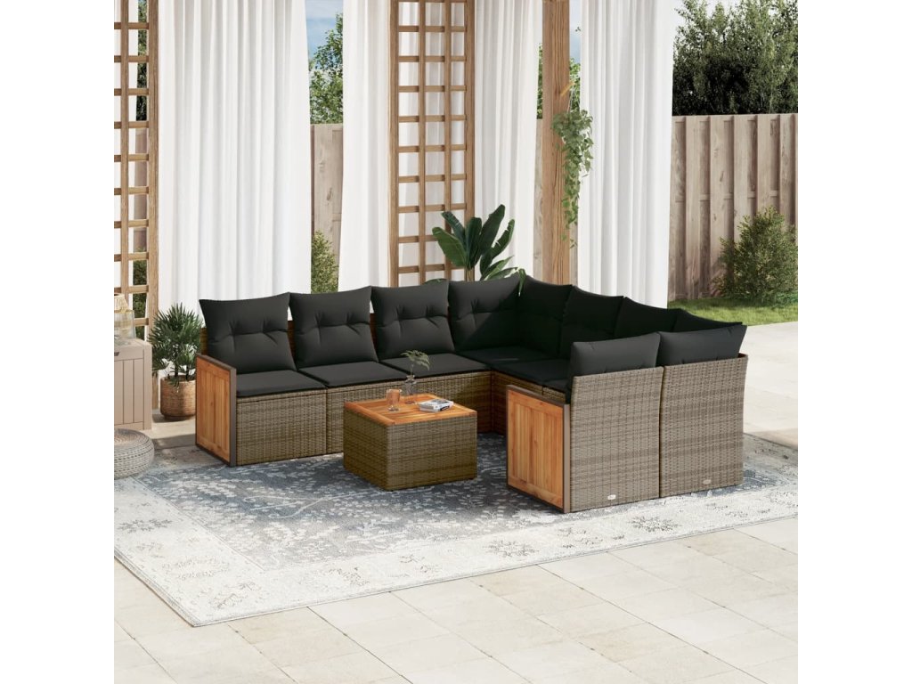 9dílná zahradní sedací souprava s poduškami šedá polyratan 3259911