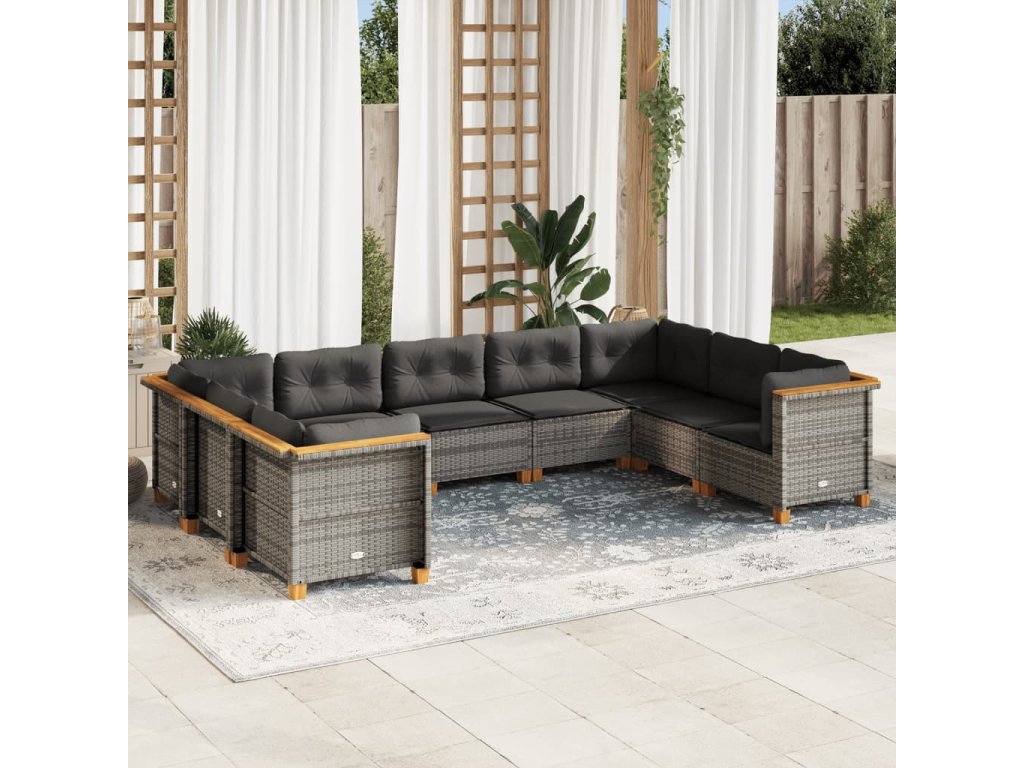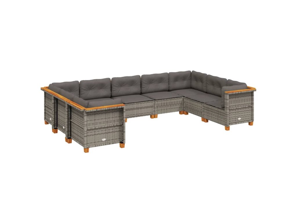 9dílná zahradní sedací souprava s poduškami šedá polyratan 3261978
