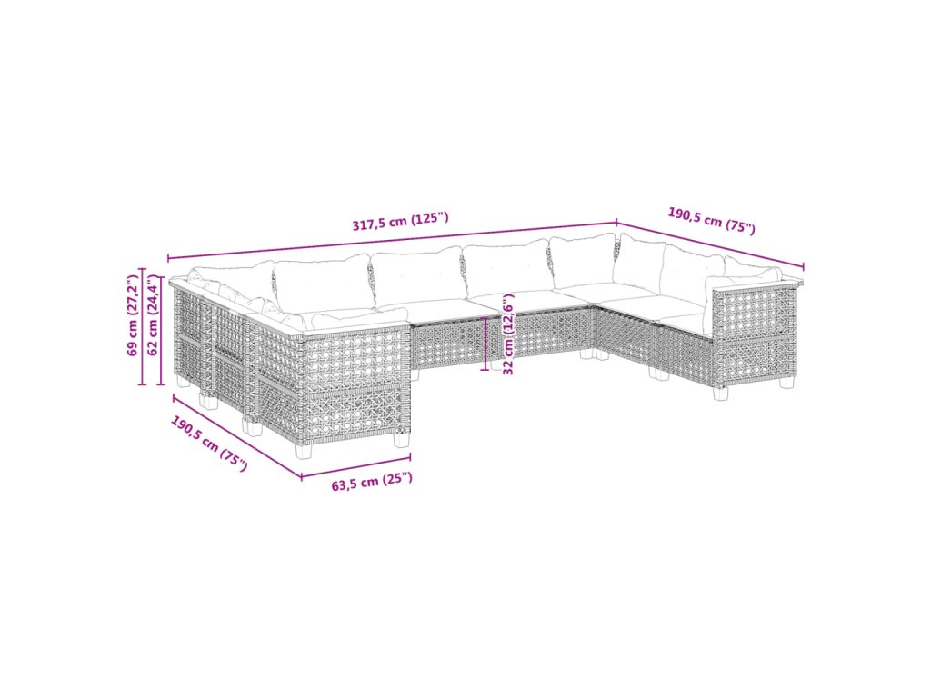 9dílná zahradní sedací souprava s poduškami šedá polyratan 3261981