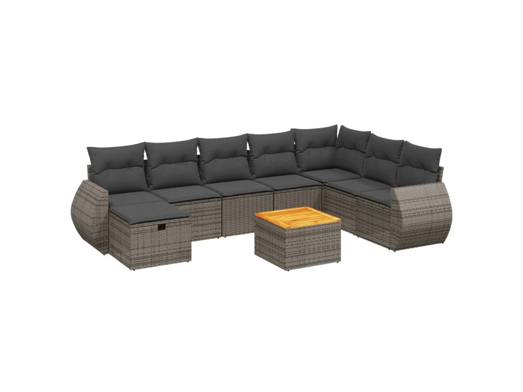 9dílná zahradní sedací souprava s poduškami šedá polyratan 3265099