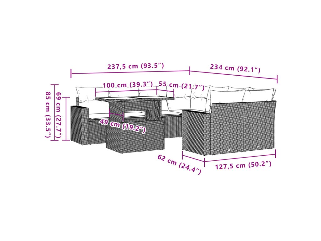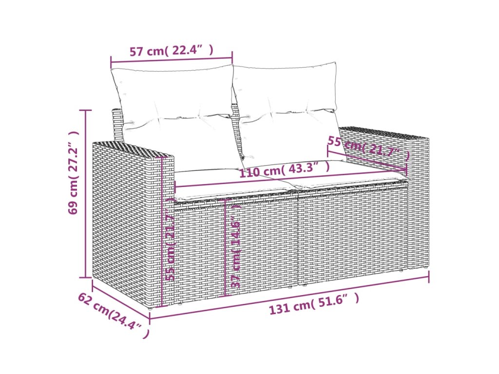 Tato zahradní sedací souprava je dokonalým doplňkem vaší zahrady, terasy nebo dvorku a poskytne vám pohodlné a příjemné místo, kde si můžete povídat s rodinou a přáteli nebo jen tak odpočívat a užívat si pobyt venku.