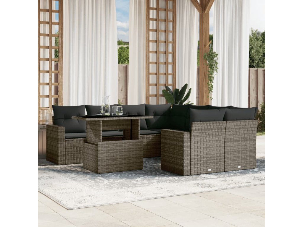 9dílná zahradní sedací souprava s poduškami šedá polyratan 3267170