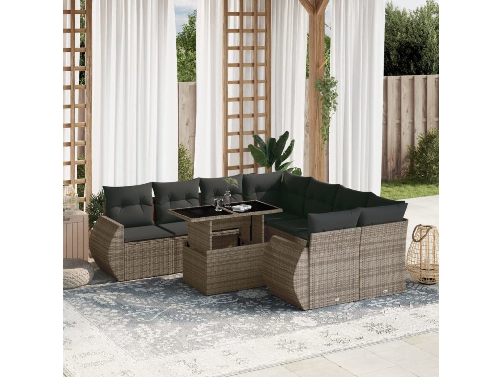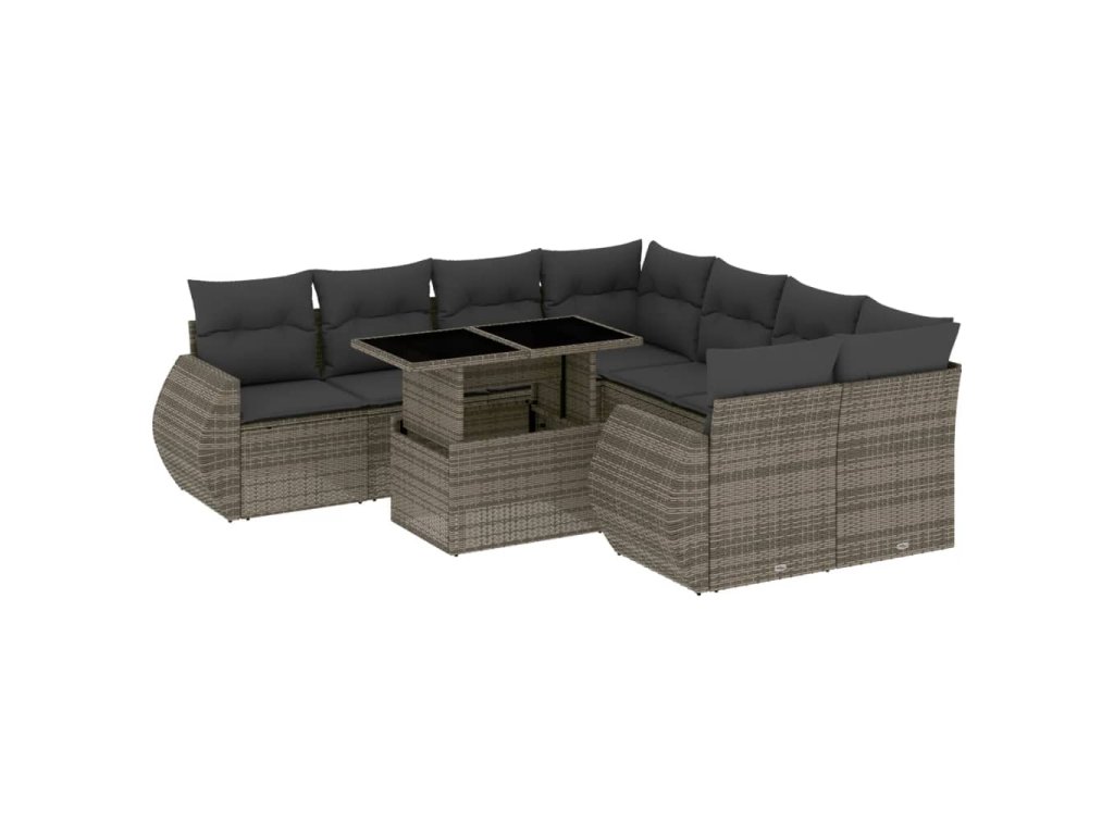 9dílná zahradní sedací souprava s poduškami šedá polyratan 3268430