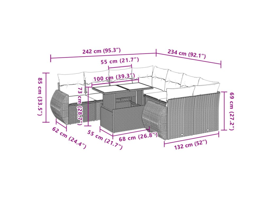 Tato zahradní sedací souprava je dokonalým doplňkem vaší zahrady, terasy nebo dvorku a poskytne vám pohodlné a příjemné místo, kde si můžete povídat s rodinou a přáteli nebo jen tak odpočívat a užívat si pobyt venku.
