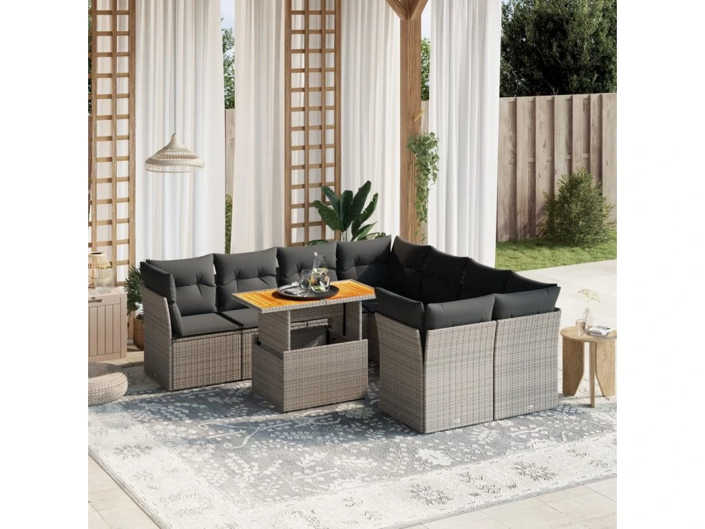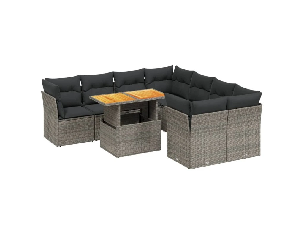 9dílná zahradní sedací souprava s poduškami šedá polyratan 3270724