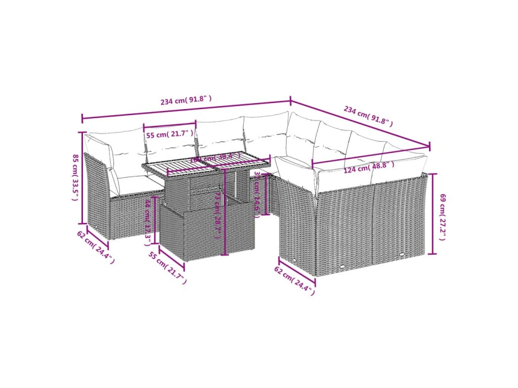 Tato zahradní sedací souprava je dokonalým doplňkem vaší zahrady, terasy nebo dvorku a poskytne vám pohodlné a příjemné místo, kde si můžete povídat s rodinou a přáteli nebo jen tak odpočívat a užívat si pobyt venku.
