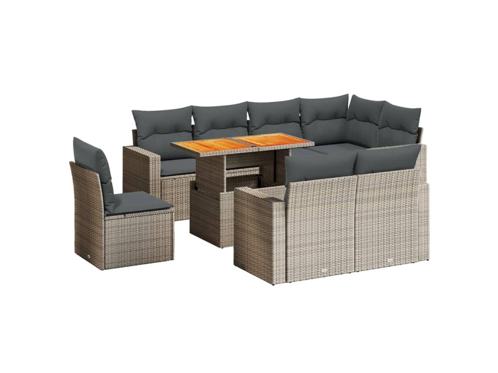 9dílná zahradní sedací souprava s poduškami šedá polyratan 3271410