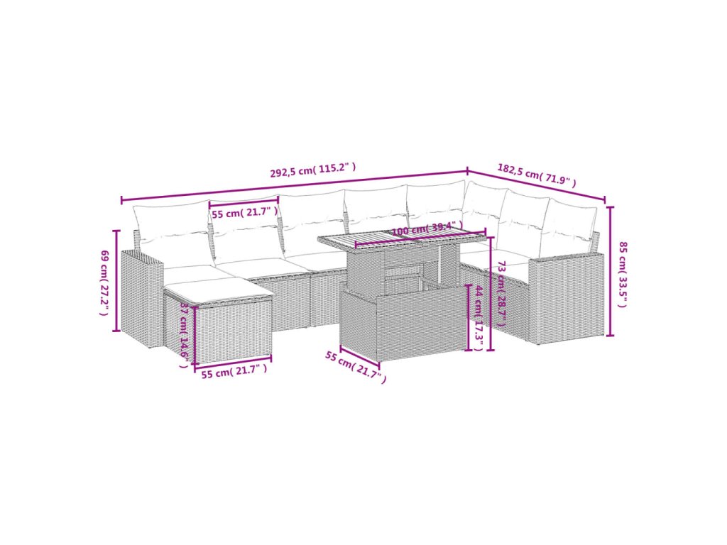 Tato zahradní sedací souprava je dokonalým doplňkem vaší zahrady, terasy nebo dvorku a poskytne vám pohodlné a příjemné místo, kde si můžete povídat s rodinou a přáteli nebo jen tak odpočívat a užívat si pobyt venku.