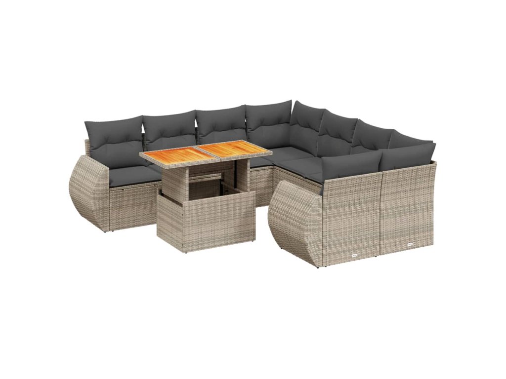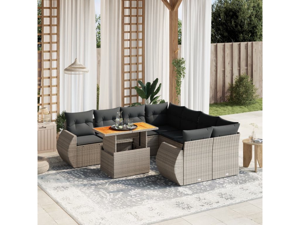 9dílná zahradní sedací souprava s poduškami šedá polyratan 3272124