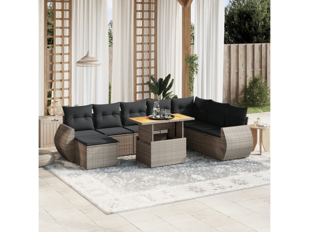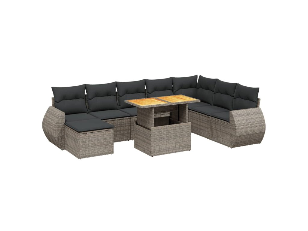 9dílná zahradní sedací souprava s poduškami šedá polyratan 3272334
