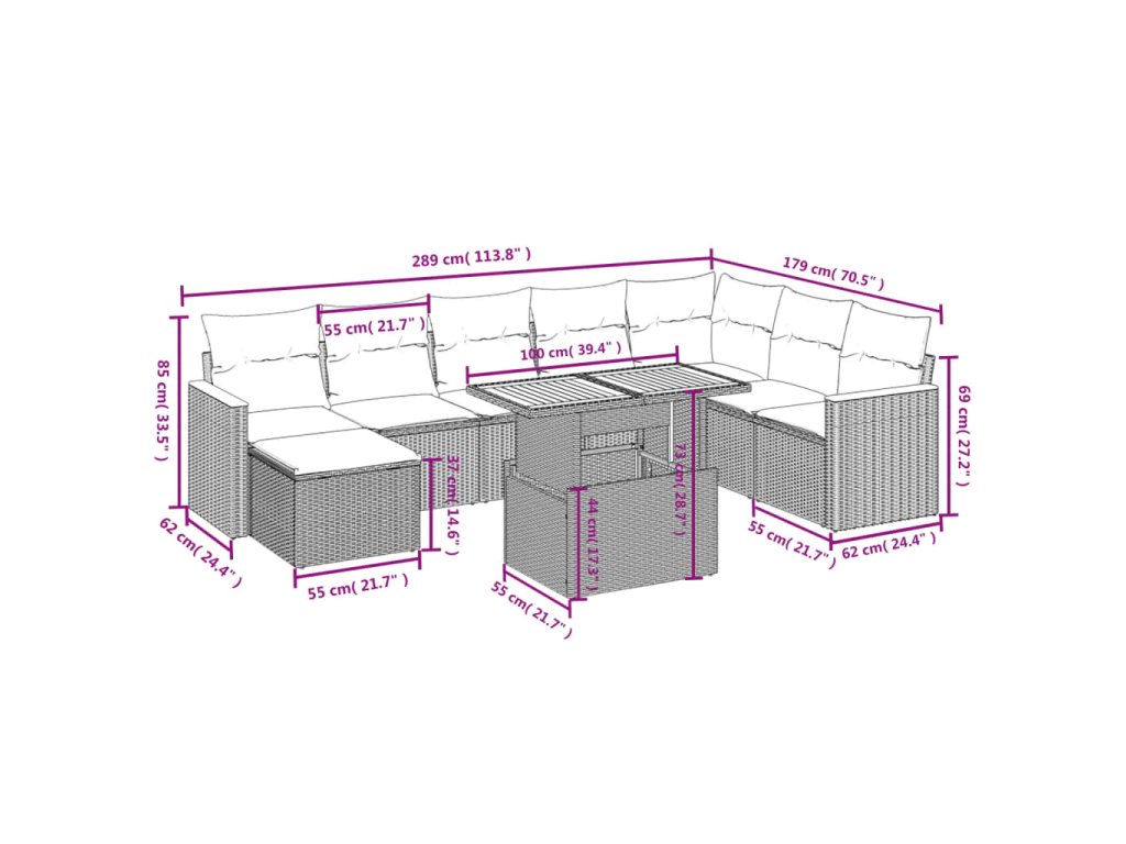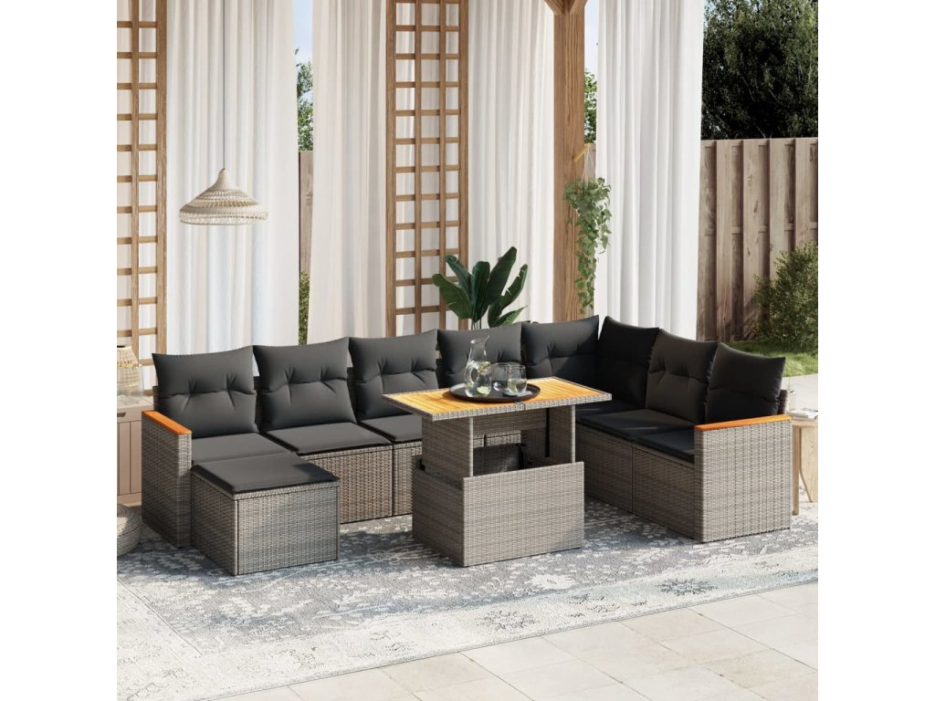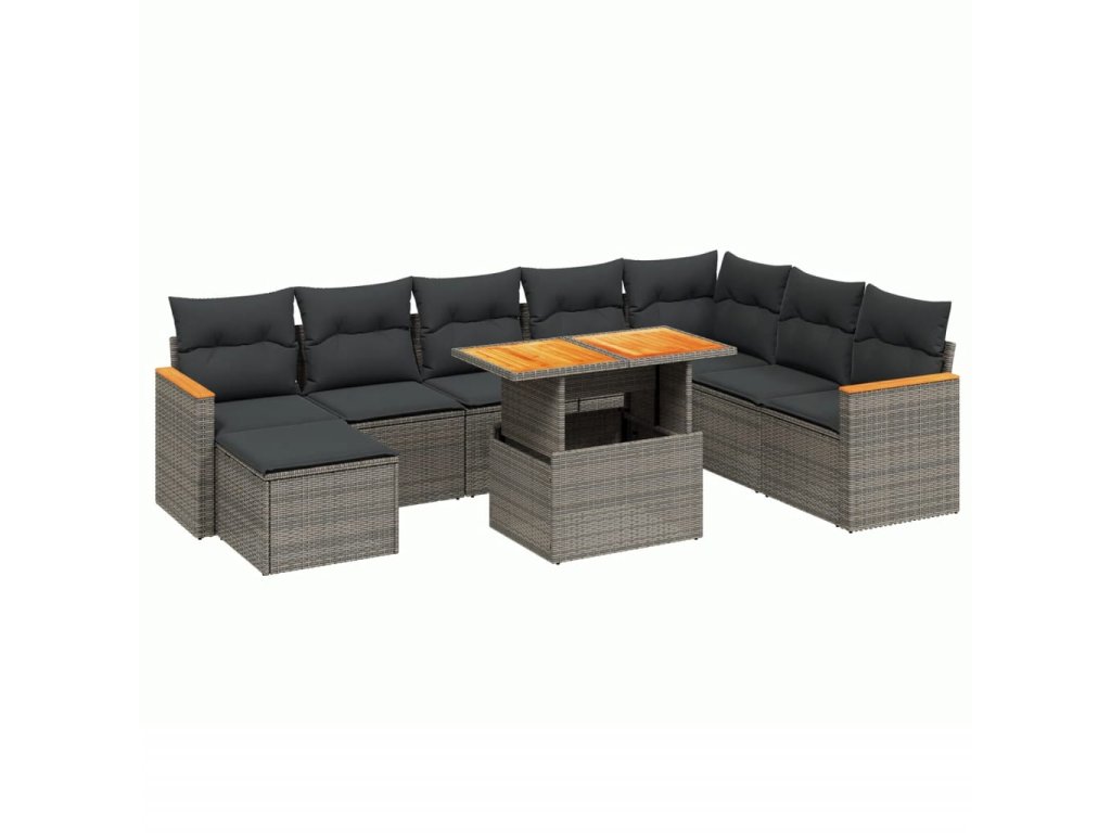 9dílná zahradní sedací souprava s poduškami šedá polyratan 3273216