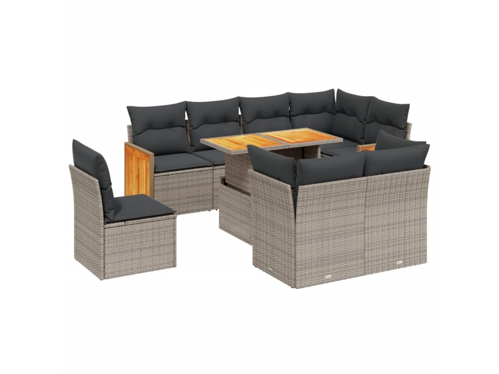9dílná zahradní sedací souprava s poduškami šedá polyratan 3274056