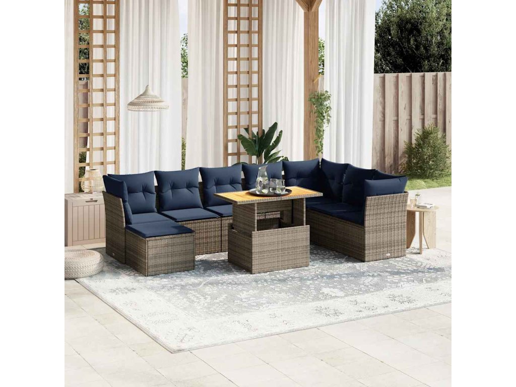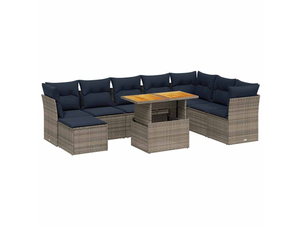 9dílná zahradní sedací souprava s poduškami šedá polyratan 3275518