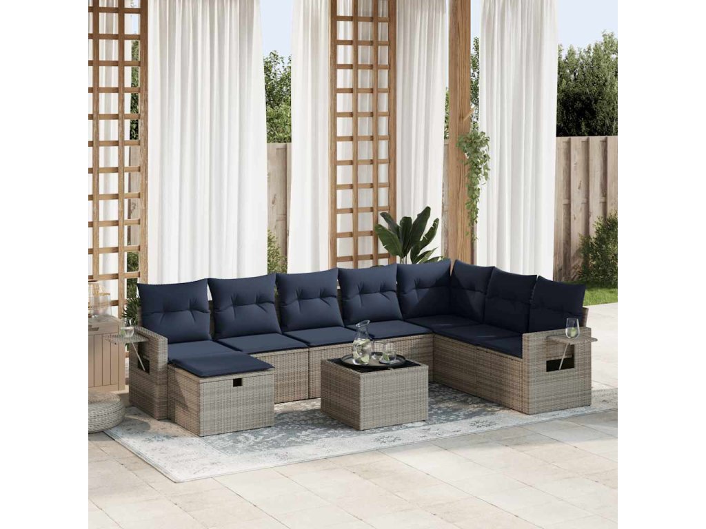 9dílná zahradní sedací souprava s poduškami šedá polyratan 3325547