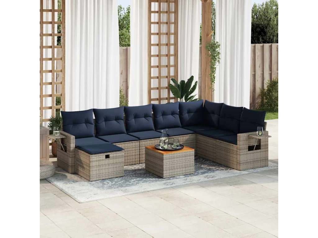 9dílná zahradní sedací souprava s poduškami šedá polyratan 3325834