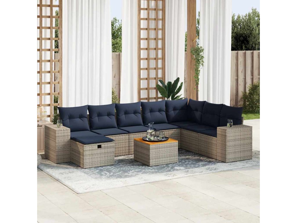 9dílná zahradní sedací souprava s poduškami šedá polyratan 3325890