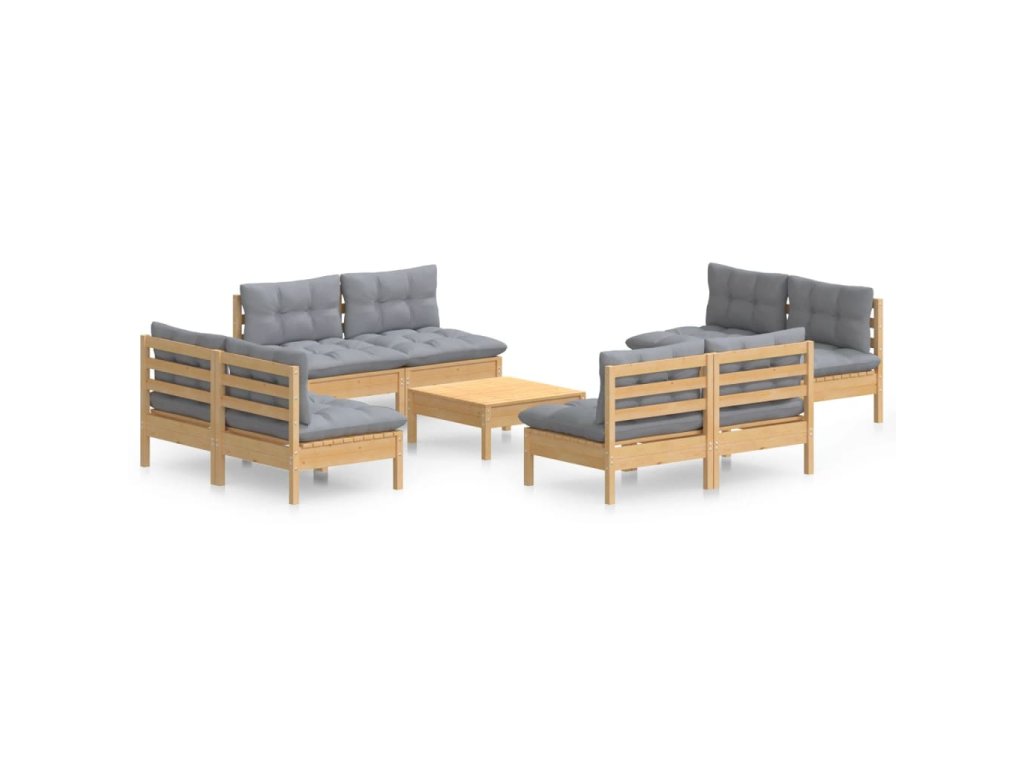 9dílná zahradní sedací souprava s šedými poduškami borovice 3096045