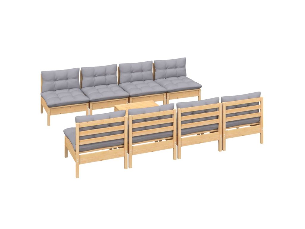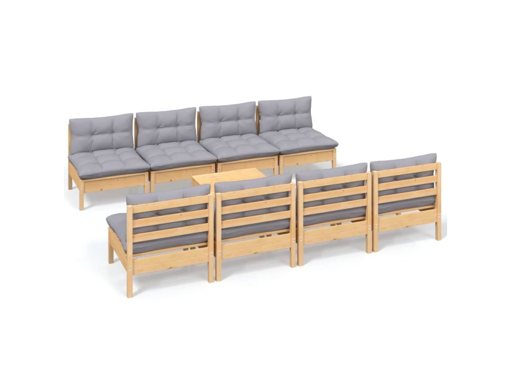 9dílná zahradní sedací souprava s šedými poduškami masivní borovice 3096141