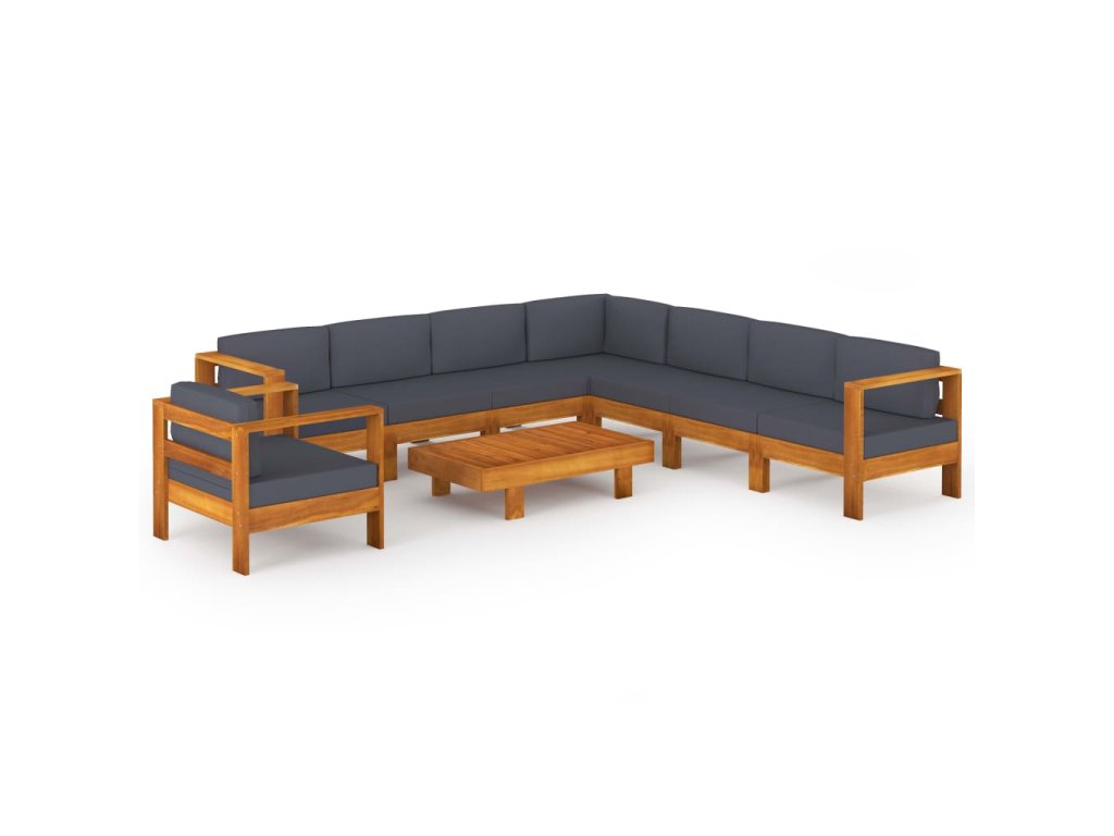 9dílná zahradní sedací souprava s tmavě šedými poduškami akácie 3057960