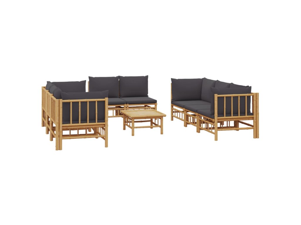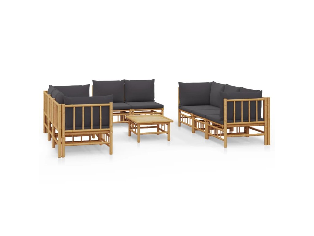 9dílná zahradní sedací souprava s tmavě šedými poduškami bambus 3155219
