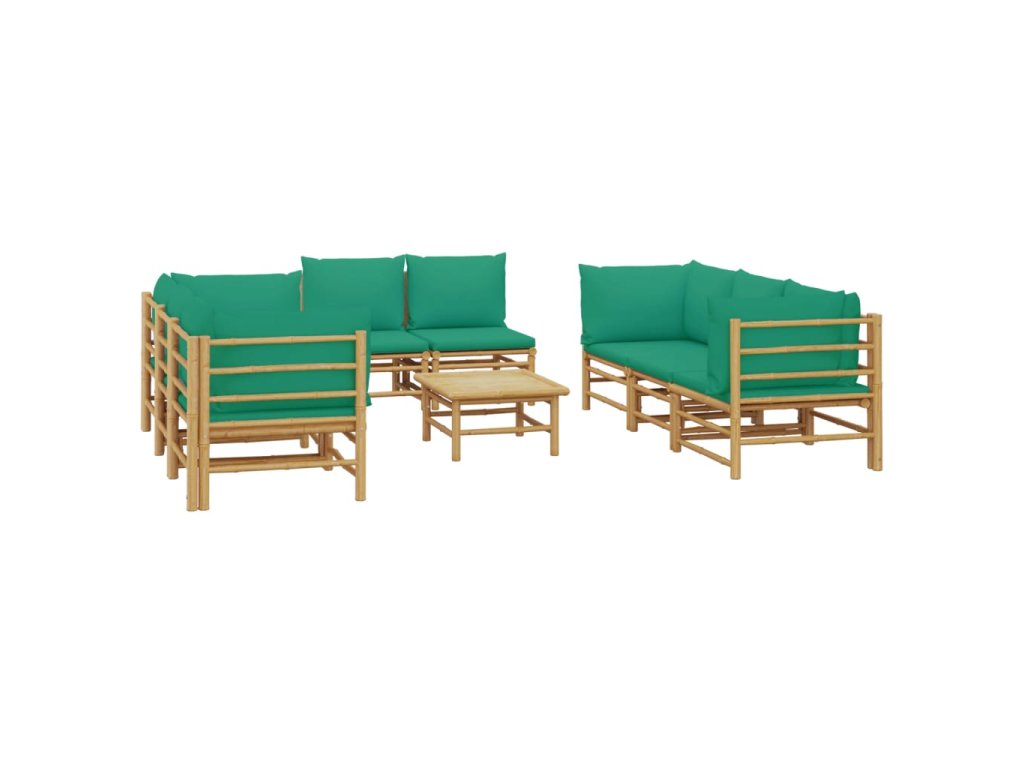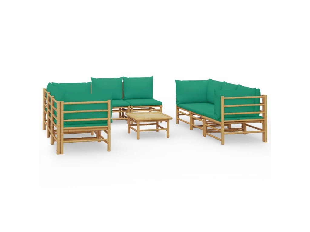 9dílná zahradní sedací souprava se zelenými poduškami bambus 3155155