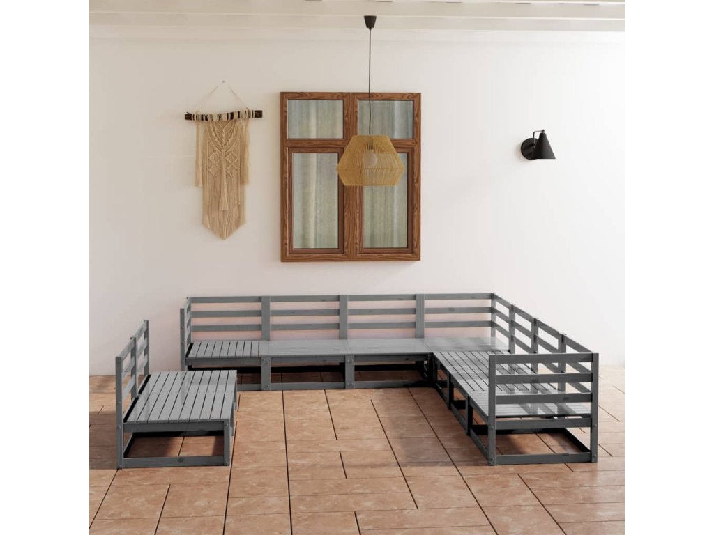 9dílná zahradní sedací souprava šedá masivní borovice 3075856
