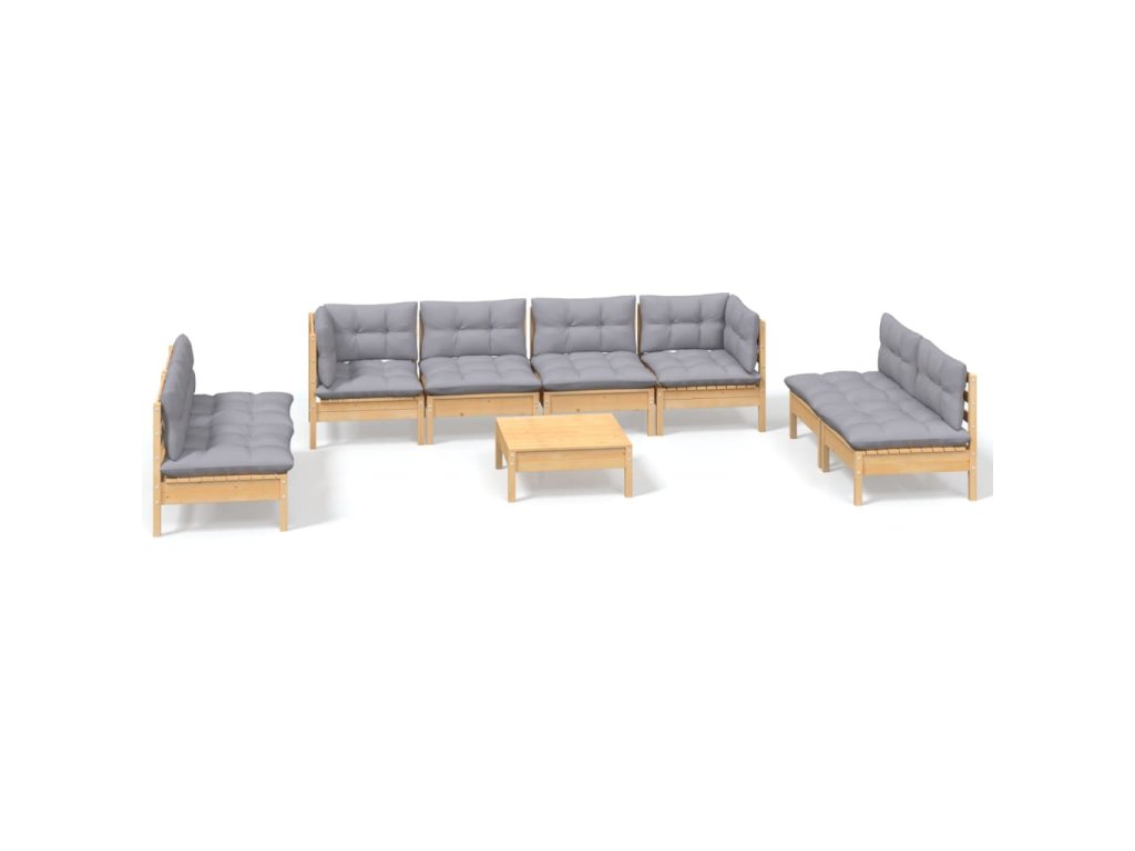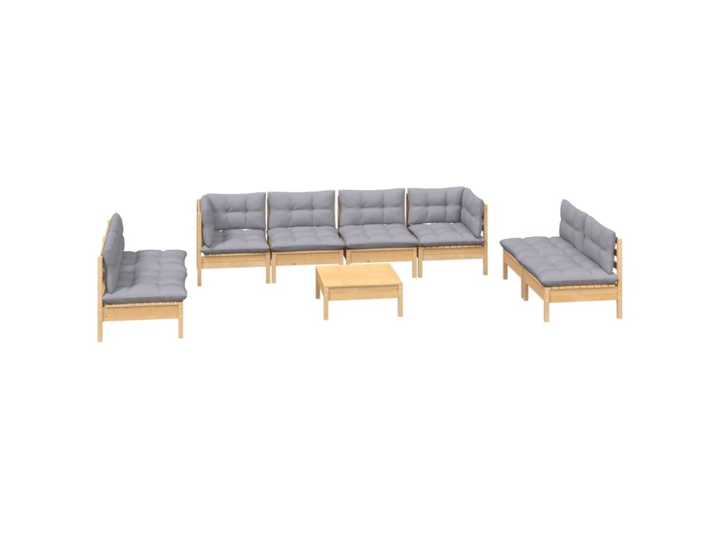 9dílná zahradní sedací souprava šedé podušky masivní borovice 3096237