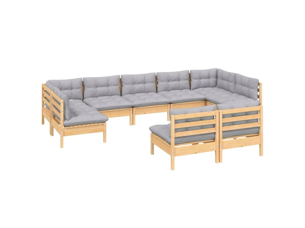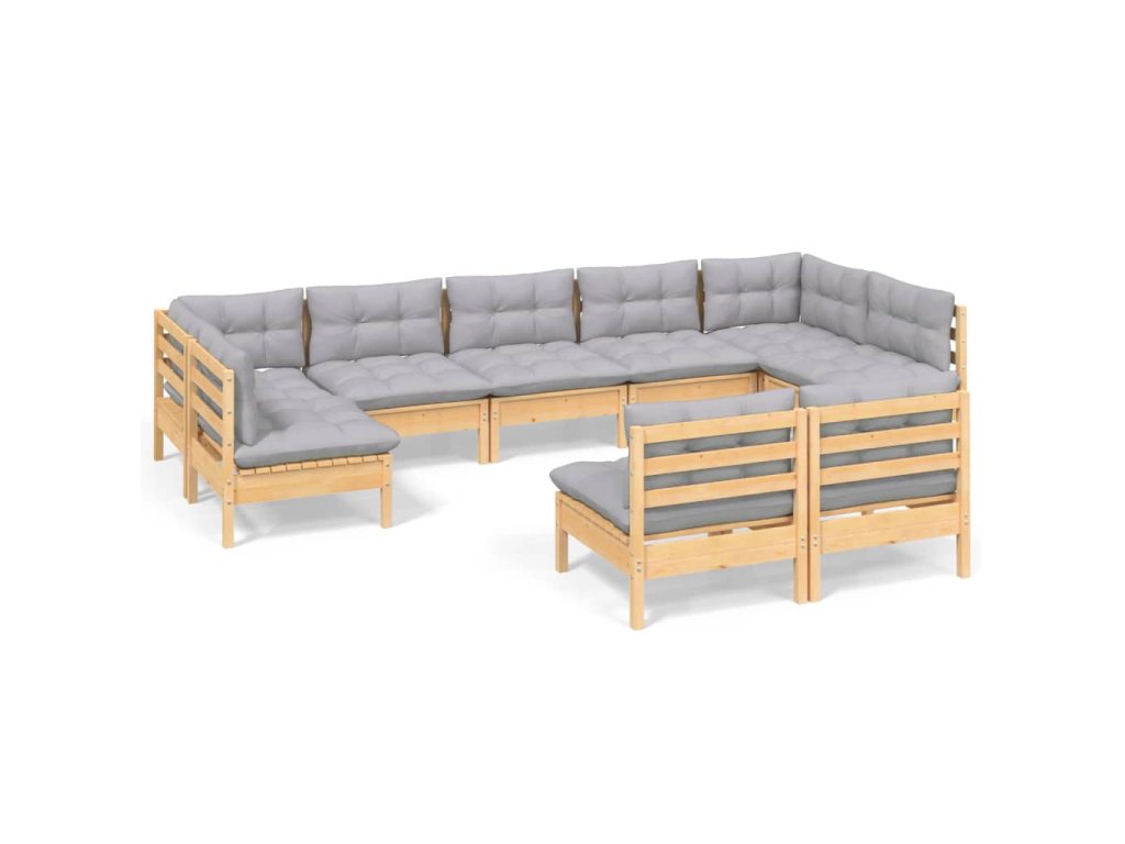 9dílná zahradní sedací souprava šedé podušky masivní borovice 3097198