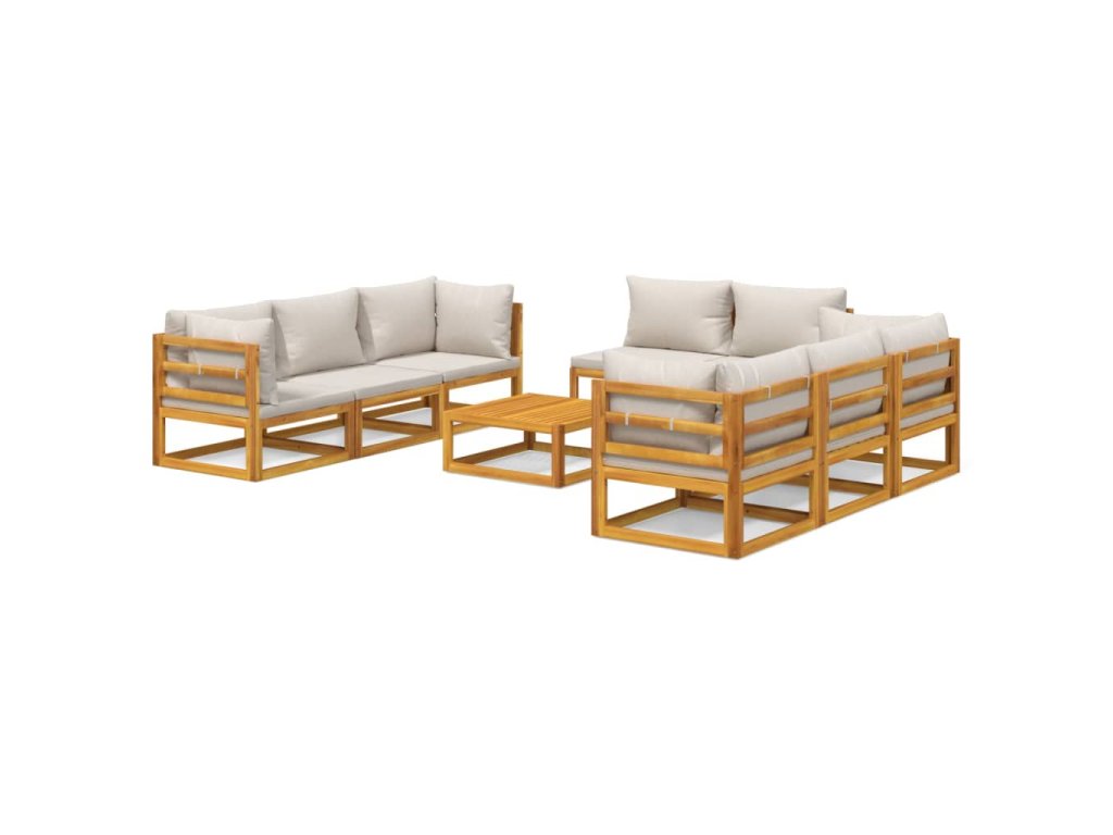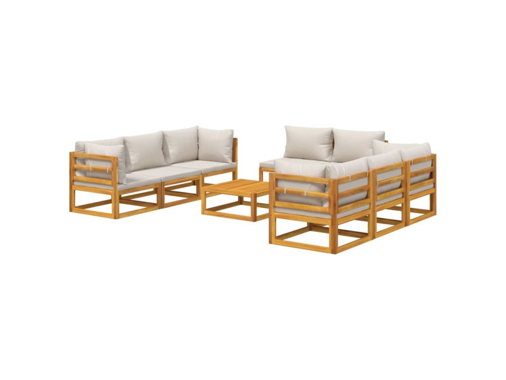 9dílná zahradní sedací souprava světle šedé podušky masiv 3155287