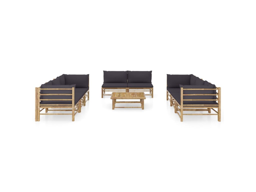 9dílná zahradní sedací souprava + tmavě šedé podušky bambus 3058212